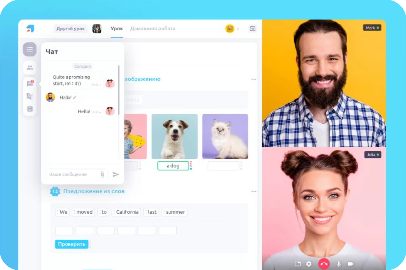 Индивидуальные онлайн-уроки в виртуальном классе c видеосвязью и работой с контентом в реальном времени.